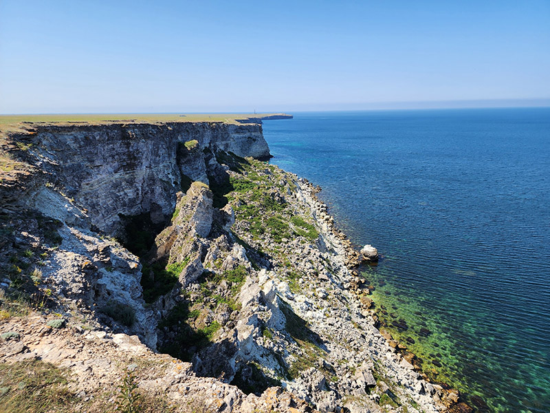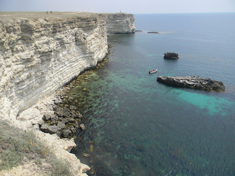 Необычайной красоты на Тарханкуте и само побережье: строго вертикальные линии известняковых скал, обрывающиеся у самого синего моря.