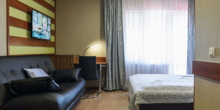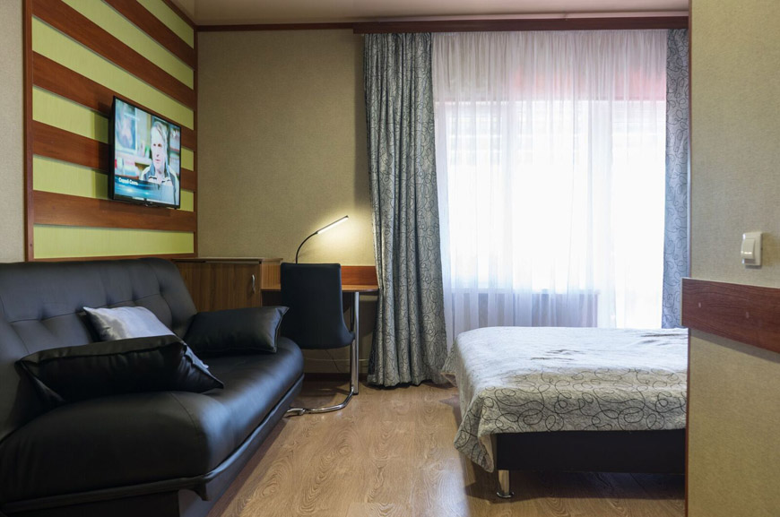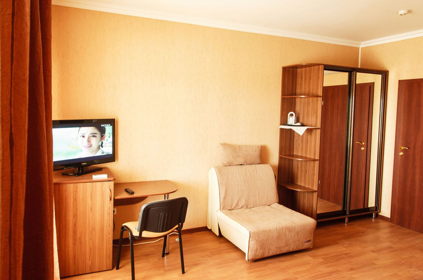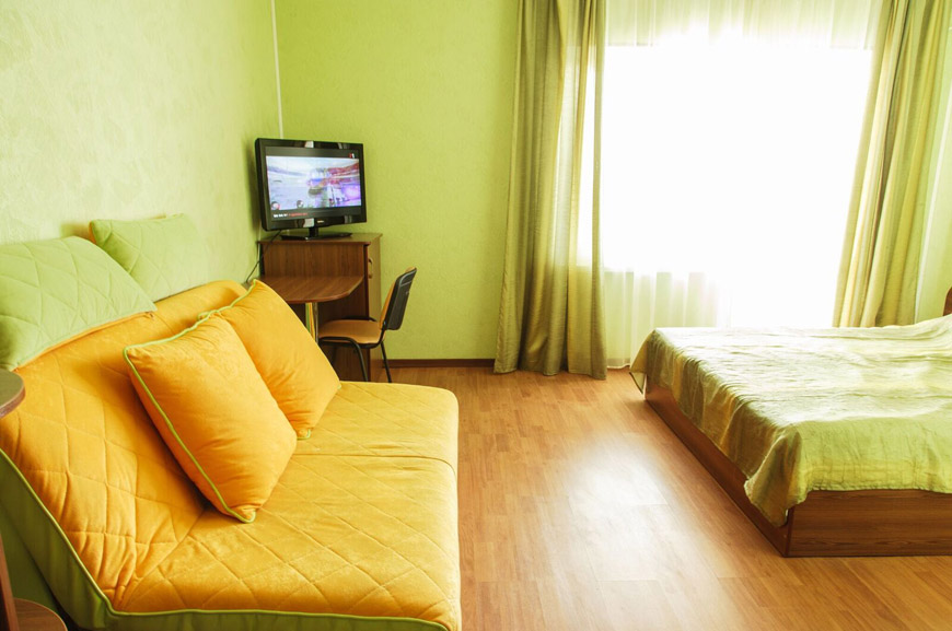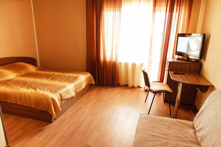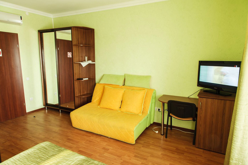 Площадь трёхместного номера — 24 кв.м. В каждом номере просторный балкон — 12 кв.м.