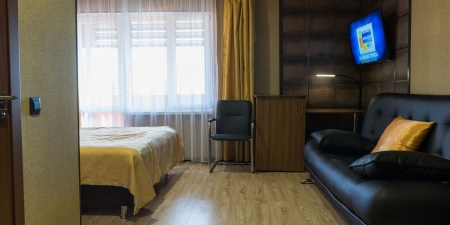 Трёхместные номера на втором этаже трёхэтажного корпуса мини отеля на Беляусе — оптимальный выбор для семейного отдыха! Кроме удобной и просторной двухспальной кровати, в номере есть раскладной диванчик, который в считанные секунды превращается в комфортное спальное место. Кроме того, есть возможность оборудования дополнительного места (еврораскладушки).